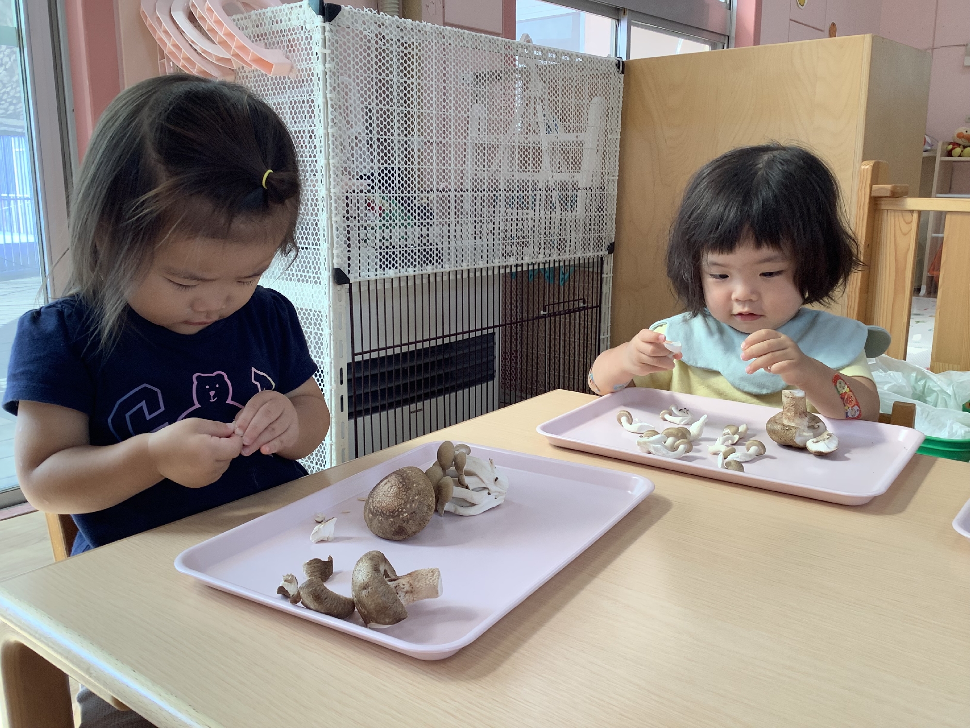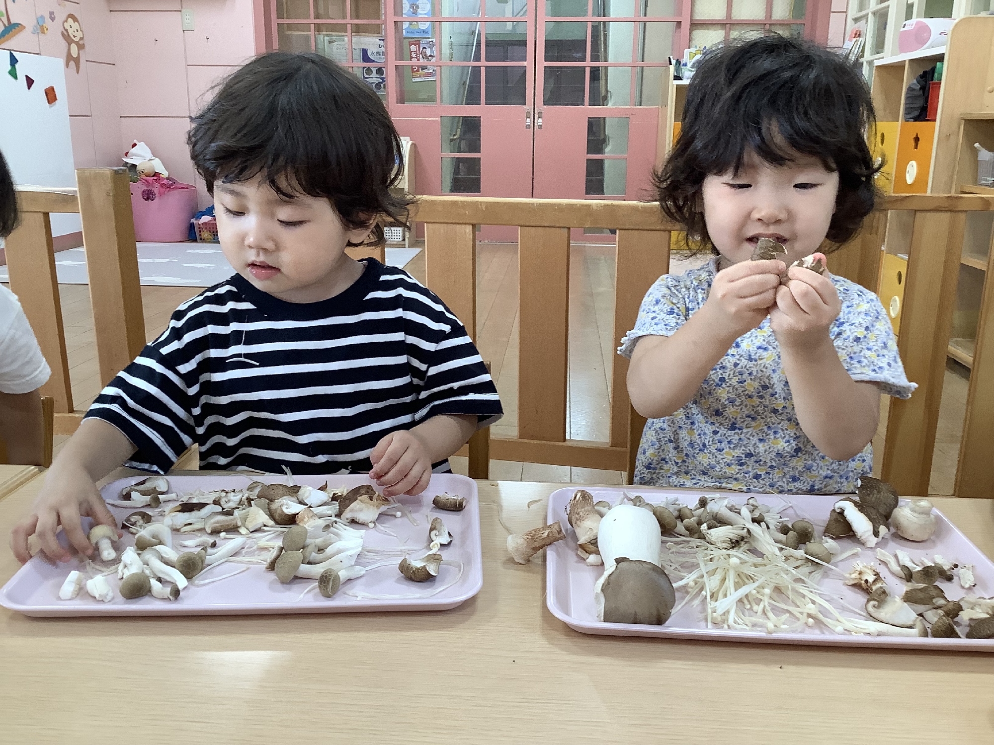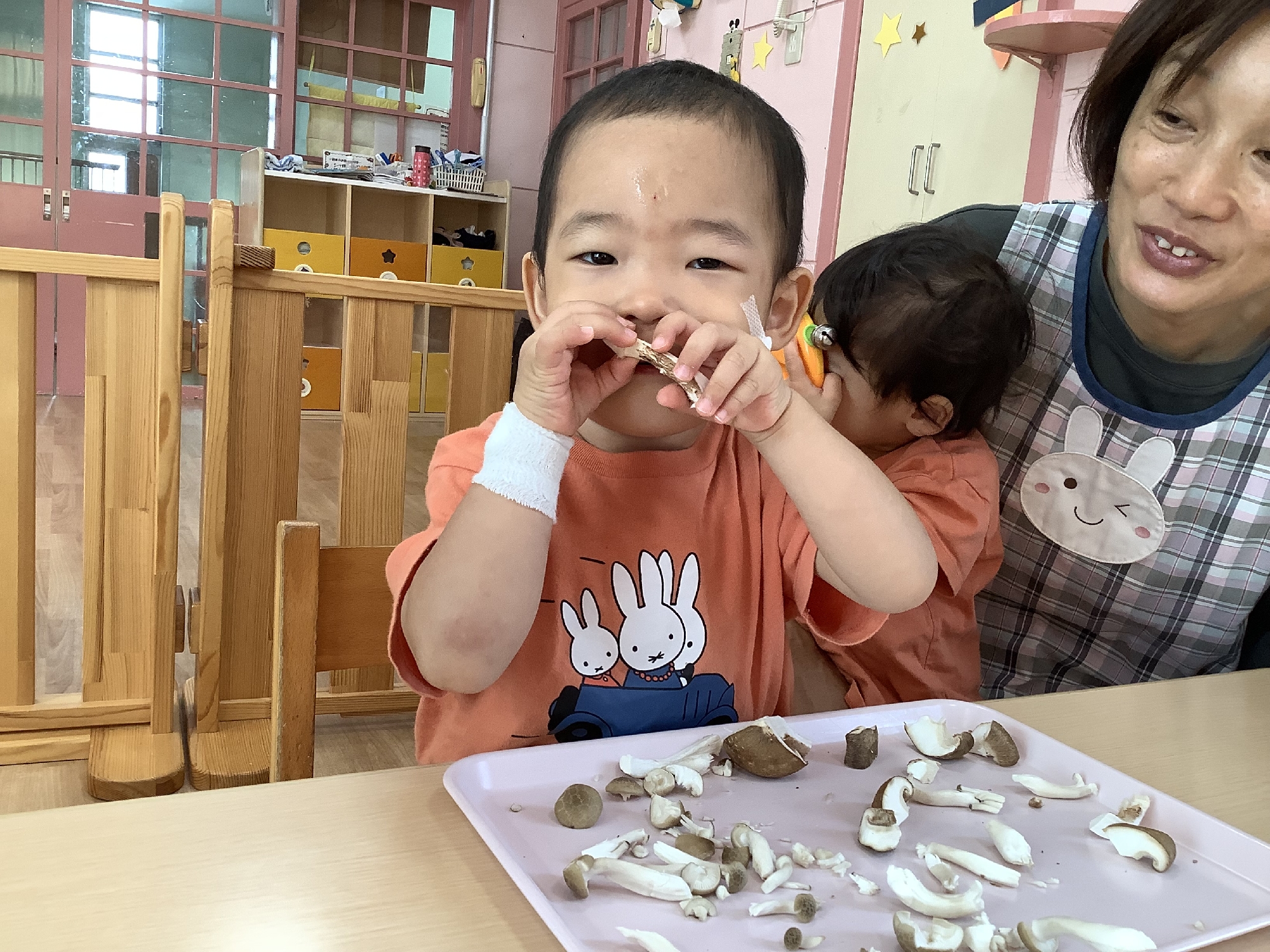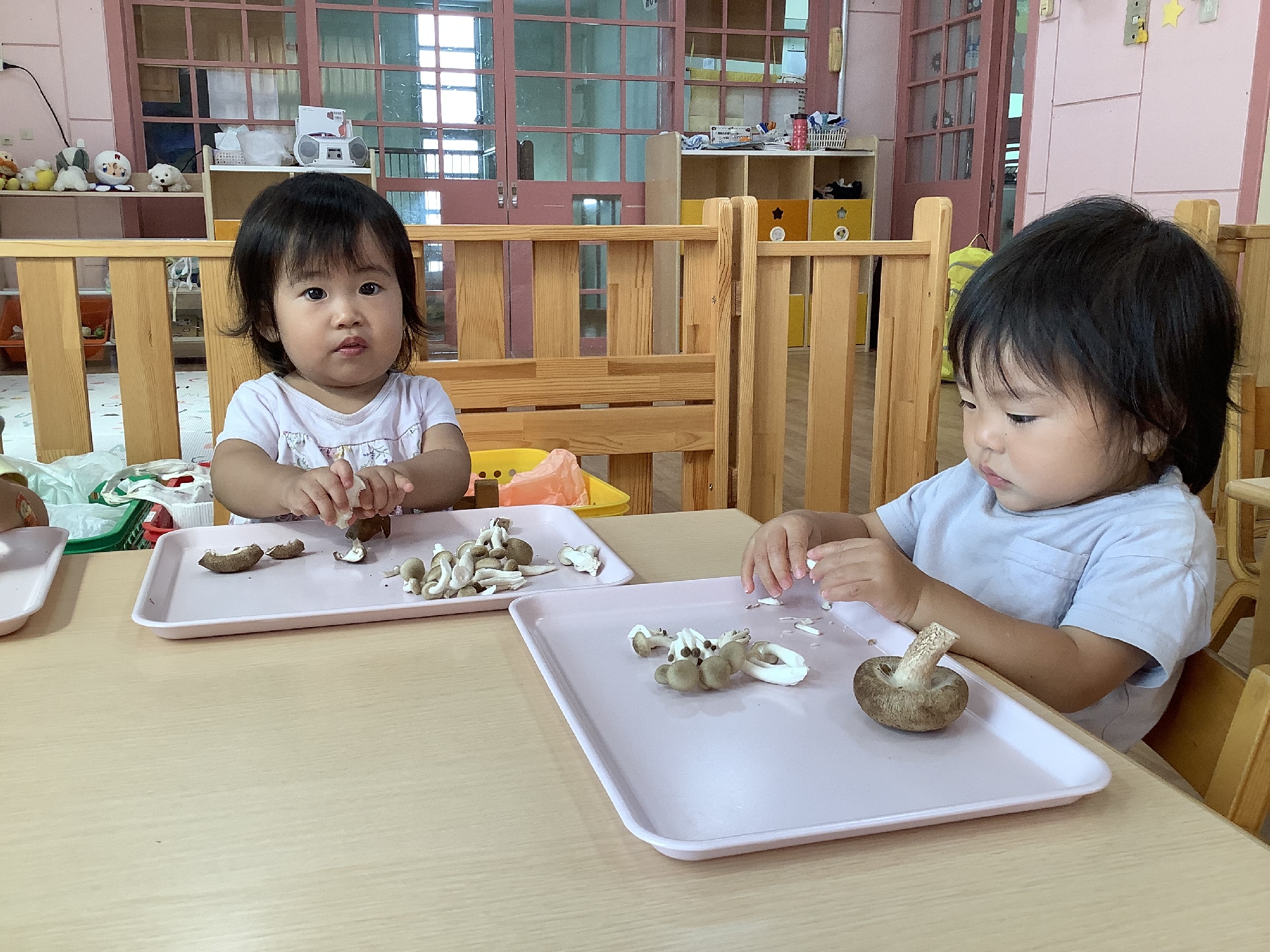 しいたけの軸をぐるっと回して外すことができたお友だちもいました!