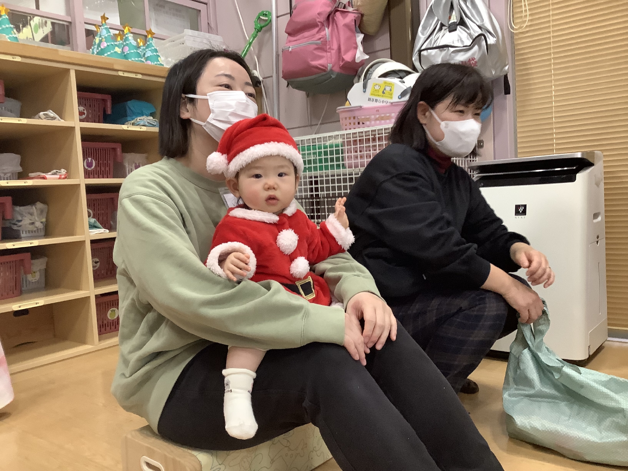 サンタクロースからのプレゼントを泣かずに受け取れたね!